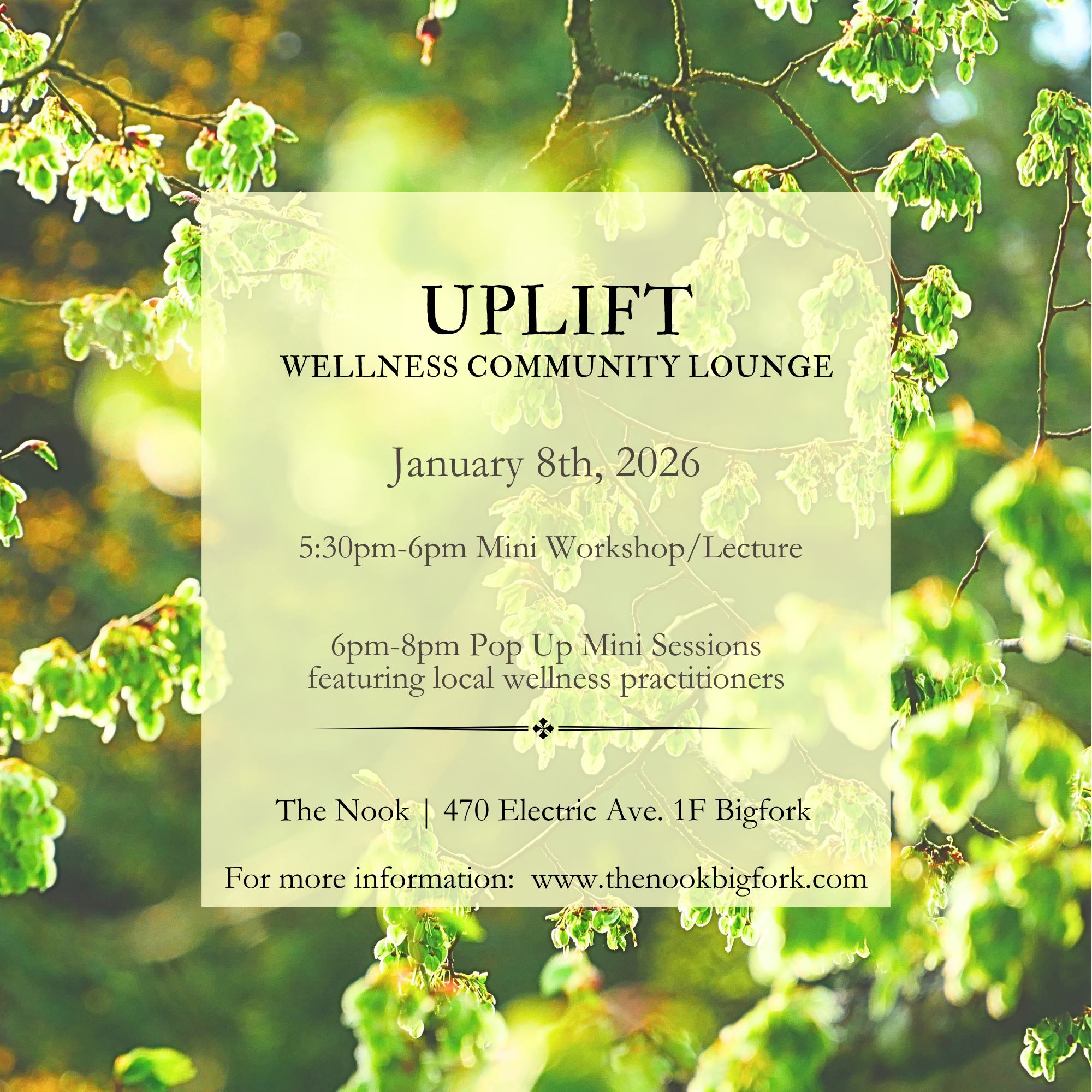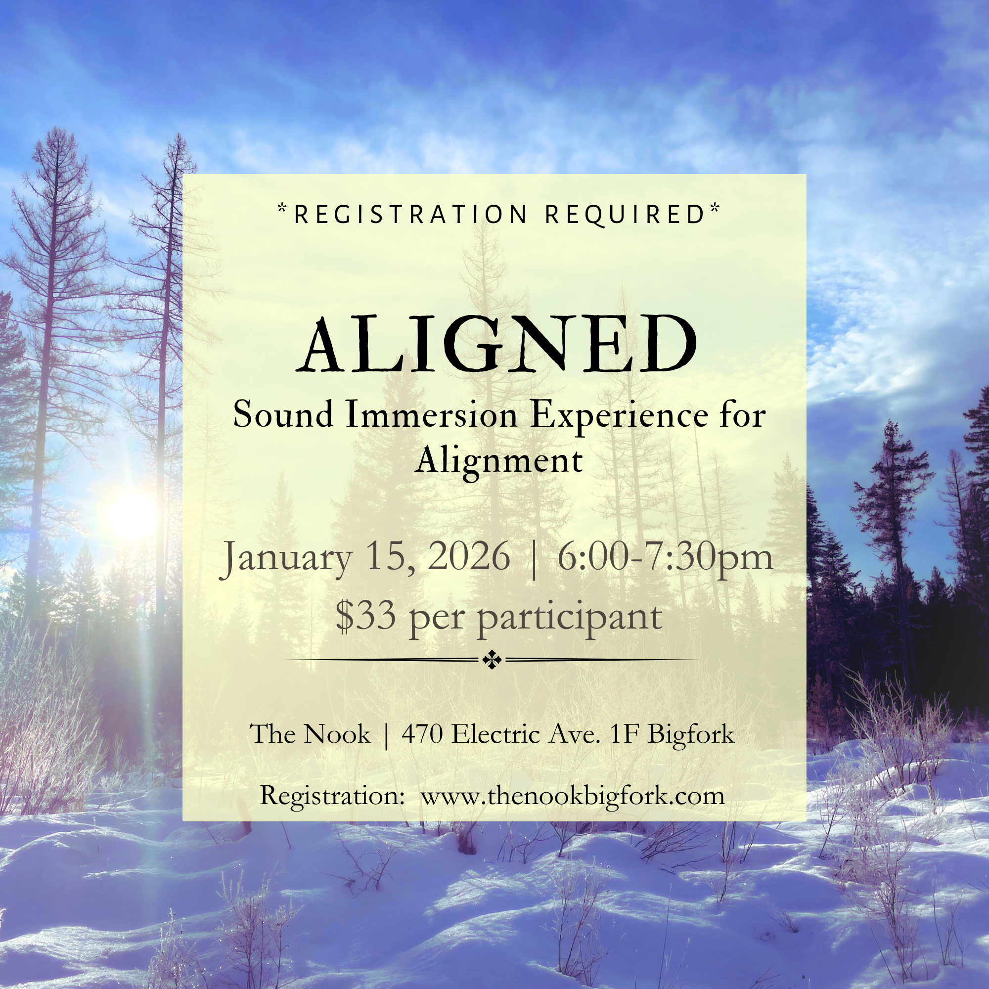 The Nook at Bigfork Bay 470 Electric Avenue, Bigfork, MontanaCommunity Sound Meditation Wednesdays, 8:00–8:30 AM | Guided by Ai Yuasa-Green As part of The Nook’s donation-based offerings, our Community Sound Meditation invites you to begin your day in harmony. […]